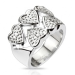 Bague de couple en acier à strass central et trios latéraux