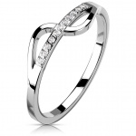 Une barrette en cristal lisse, éclatant comme le diamant, ferme le plat de cette superbe bague mixte dorée par ionisation.