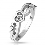 La jointure sur le plat de la bague est faite par une pierre claire ronde, très pure et bien facettée.