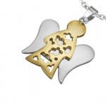 Cet amusant pendentif en acier doré représentant un petit personnage en forme de serrure de cadenas a le chic de s'orner de trois superbes pierres de synthèse rondes.